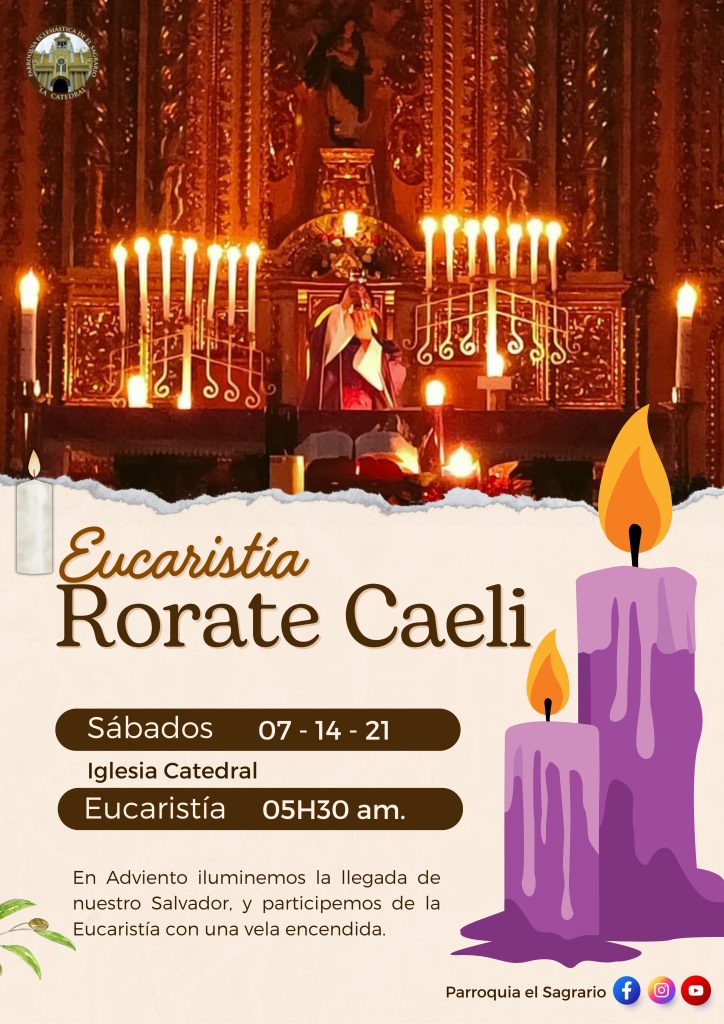 Los sábados 07 , 14 y 21 de diciembre los invitamos a la “Misa Rorate Caeli” a las 05H30 am.