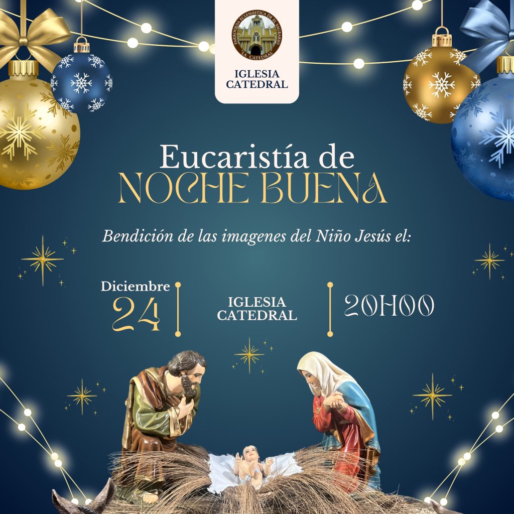 Luego de haber preparado nuestro corazón a lo largo de todo el Adviento, celebramos el Nacimiento del Niño Jesús, el martes 24 de diciembre con la Santa Eucaristía precedida por Mons. Walter Heras Segarra, a las 20H00.