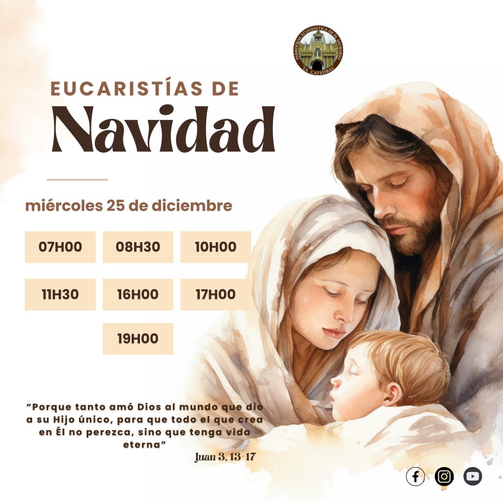 Miércoles 25 de diciembre: Natividad del Niño Jesús; les invitamos a participar de las Eucaristías en los siguientes horarios: